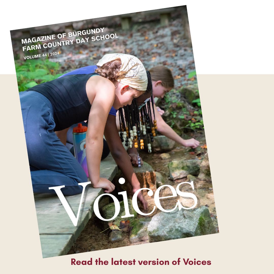 Generations of Burgundy’s students and alumni — not to mention several hundreds of adults associated with the school across the decades — have experienced the uniqueness of Burgundy: in the incredible campus in Alexandria that inspires learning, creativity and independence; in the Burgundy Center for Wildlife Studies and the deep learning, memories and respect for Nature that are fostered there; in the many field trips all over the metropolitan Washington region. Our faculty and staff — with significant help from families — help students and alumni forge connections with all kinds of people on and off campus who teach, inspire, and illuminate.